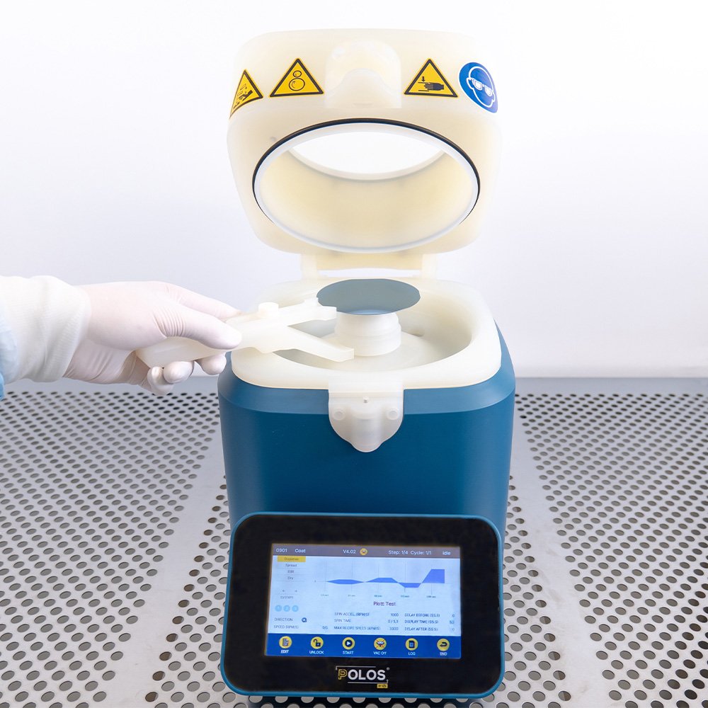 You can now order our new improved and innovative designed POLOS® SPIN150X model. It is a versatile and high-quality substrate spin coater, made out of NPP and also available in PTFE. It is specifically designed for R&D and low volume production. It is a desktop version for manual or automated (optional) chemical dispense.